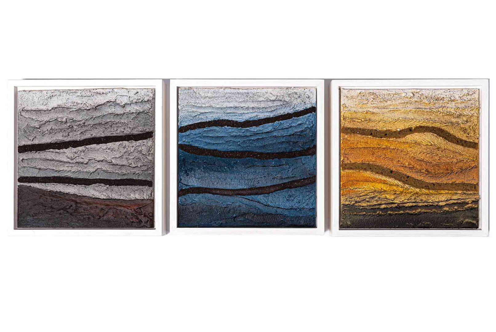 220-221-222 Trilogie Dachpappe, Sagex, Verputz, Spachtelmasse, Sand 22x22cm